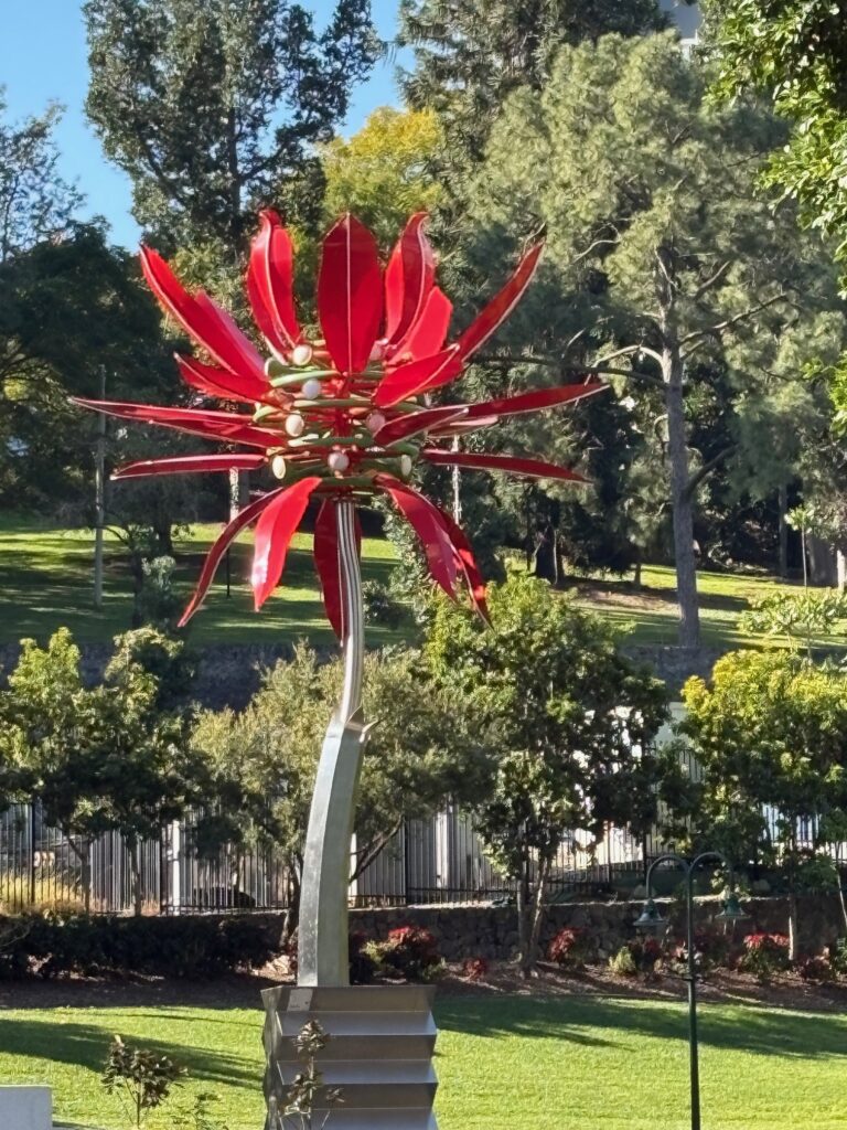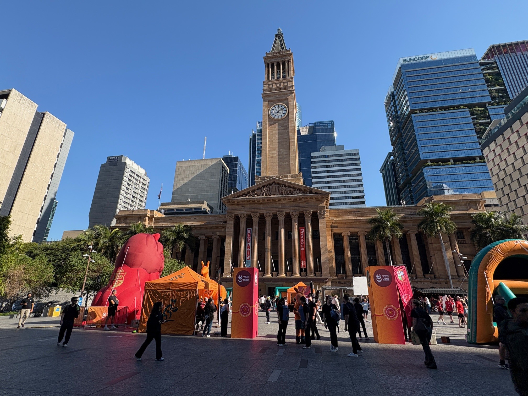 J’ai aimé me promener et m’arrêter sur les ponts de Brisbane. Ils sont modernes et élégants et en traversant la rivière qui serpente au cœur de la ville, ils offrent des angles et des lumières insoupçonnés. De mon hôtel sur la South Bank, il me fallait prendre un pont pour arriver sur King George Square et le City Hall de Brisbane. La première pierre de cet impressionnant monument, mariant le fronton du Panthéon de Rome et le Campanile de Saint-Marc à Venise, a été posée en 1917. Sans doute inspiré par le goût impérial anglais pour les « Pomp and Circumstance », le bâtiment dénote un peu avec le reste de la ville au style beaucoup plus contemporain. Je suis rentré à l’intérieur et y ait visité le « Museum of Brisbane ». Hélas, il n’y avait plus de tickets pour montrer en haut de la tour et y découvrir les mécanismes de l’horloge.