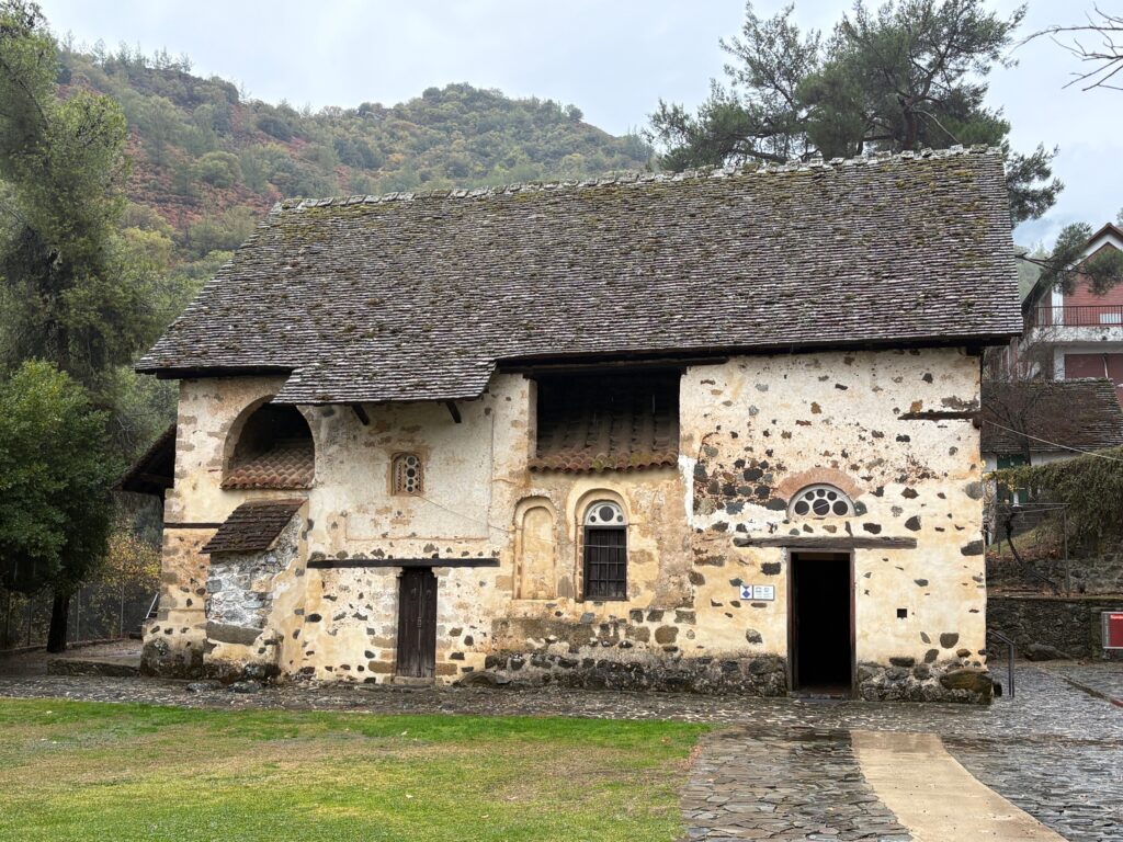 En préparant ma visite à Chypre en décembre, j’espérais pouvoir échapper à la grisaille de la fin de l’automne et m’offrir une bouffée d’air méditerranéen avant l’hiver. Je dus déchanter : la pluie accompagna l’essentiel de mon séjour. Les visiteurs étaient déçus, mais les habitants de l’île nous répondaient qu’il était temps, que les averses étaient les bienvenues, tant l’année 2025 avait été sèche. C’est en conduisant dans le massif du Tróodos à la recherche des superbes églises peintes qu’abrite cette région que je pus me rendre compte des effets de cette sécheresse. A travers les essuie-glaces de ma voiture qui avaient du mal à chasser la pluie battante, je scrutais des versants entiers de montagnes, calcinés après les incendies de juillet 2025, parmi les plus graves que l’île ait eu à affronter. Au gré des virages, j’apercevais des vignobles dont seuls subsistaient quelques moignons de ceps brûlés et ensuite, des restes de forêts, où des troncs de pins noirs montaient impuissants vers le ciel.